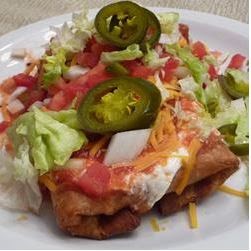 Shredded Beef Chimichangas – 2 lbs of beef chuck roast, trimmed of fat – “Usually deep fried, chimichangas can also be oven-fried with less mess, fuss, and fat. Use the filling in burritos as well. You may also deep fry, if desired.”