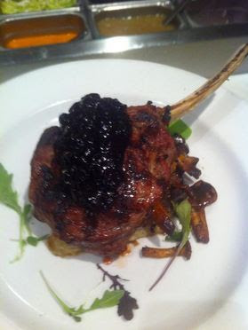 @serrattopdx Silvies Valley Veal Chop with herb potato gratin, chanterelles, savory Oregon mt. Huckleberry compote.